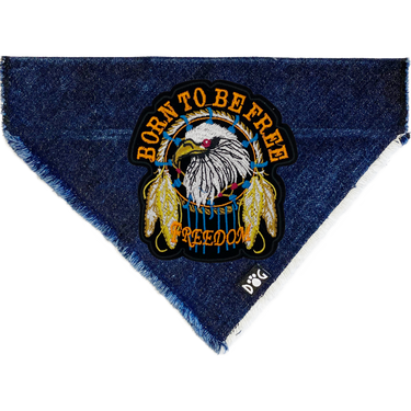 The Born to Be Free Denim Bandana for Dogs combines bold style and everyday comfort for the ultimate statement accessory. Designed for free-spirited pups, this durable denim bandana features a striking eagle and feather patch with “Born to Be Free” embroidery - symbolizing confidence, adventure, and individuality.