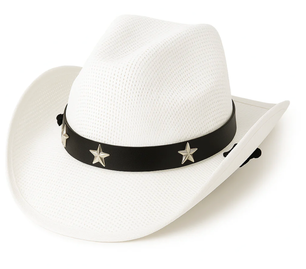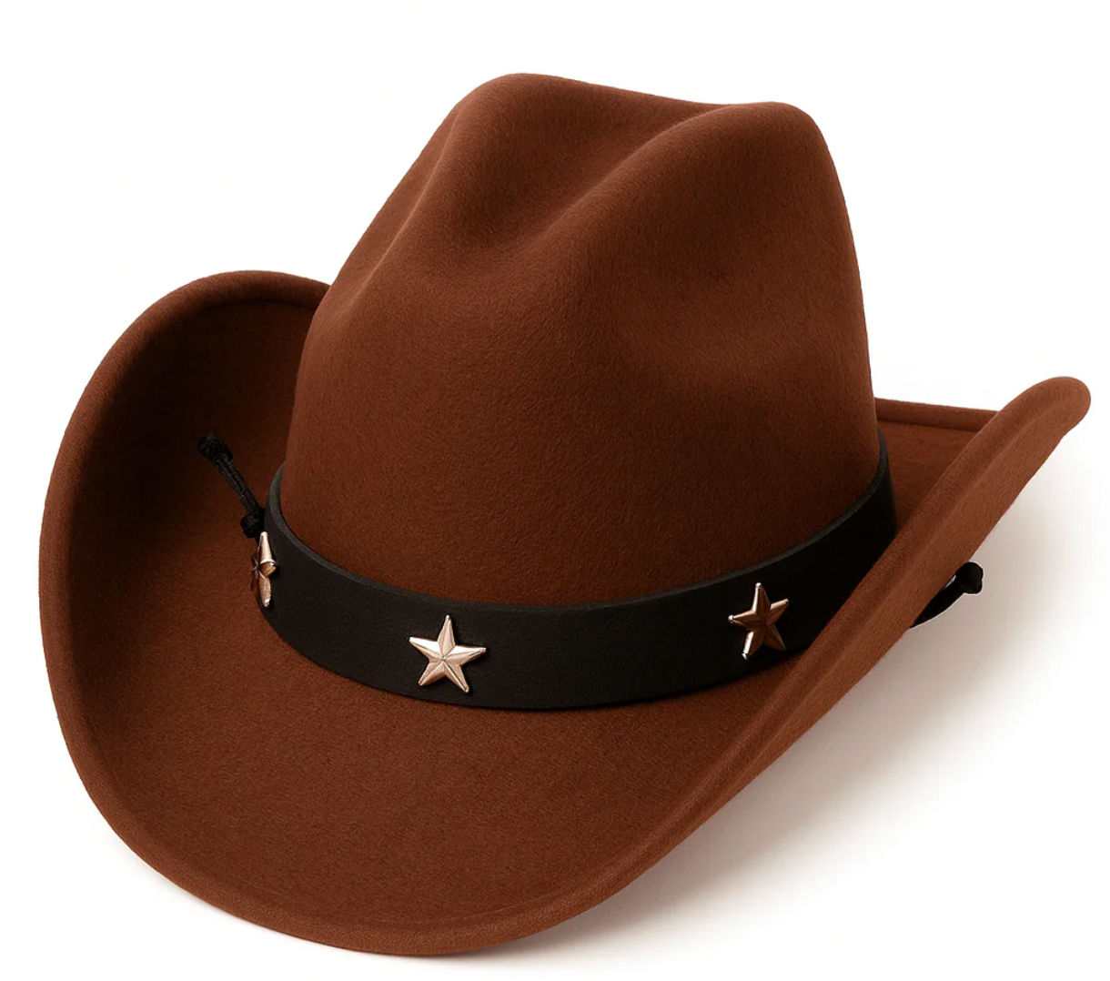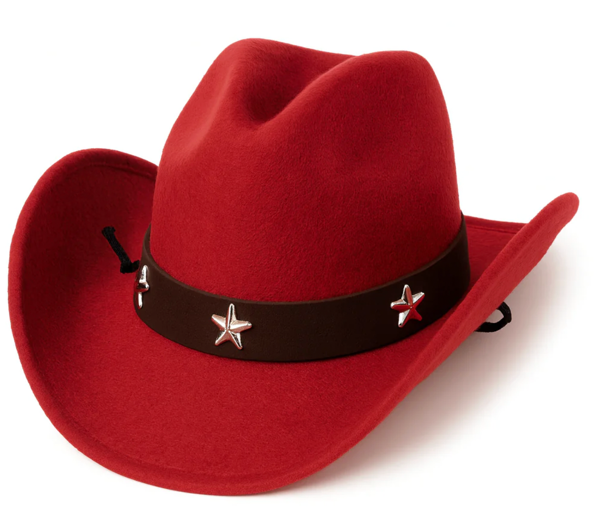 The structured hat maintains its shape while the adjustable strap keeps it comfortably in place, so your pup can roam (or pose) with confidence. Each hat is finished with a decorative concho band for that authentic Western touch.