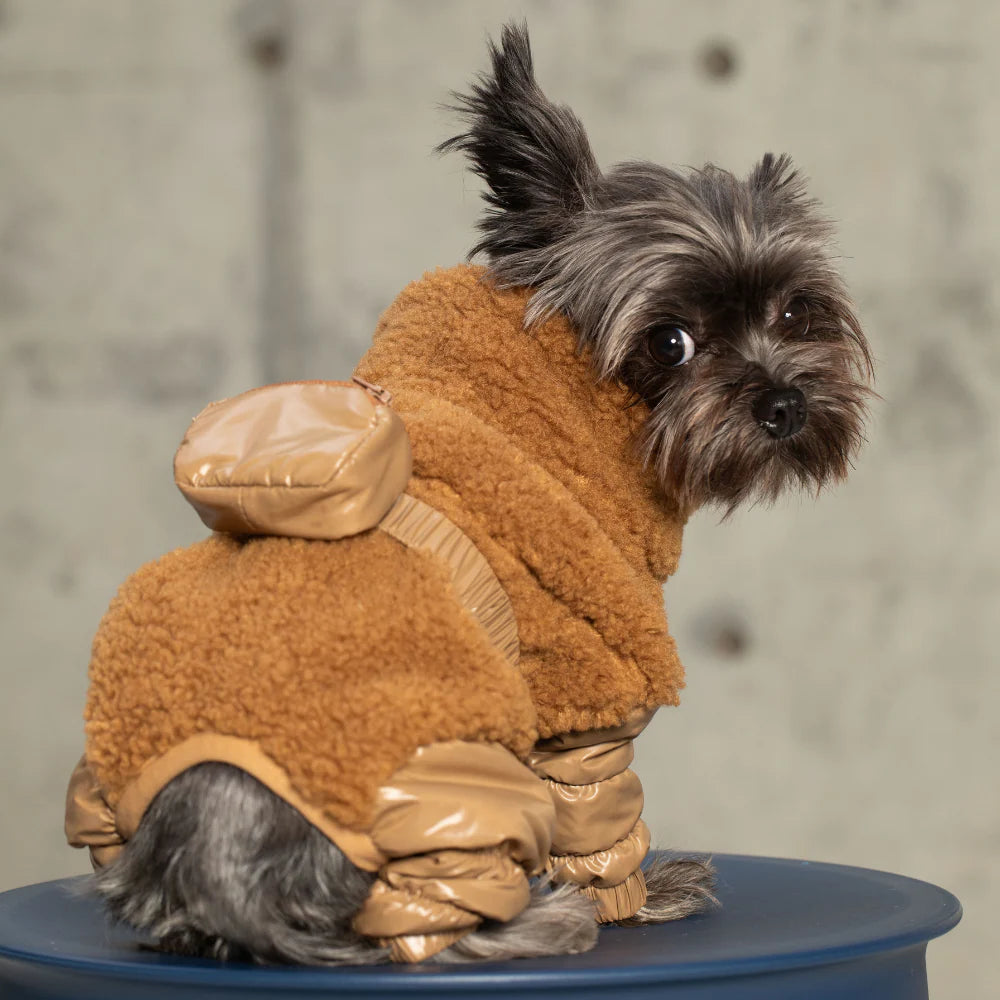 Designed with style and practicality in mind, the Sherpa Onesie is not only windproof and weather-ready, but also machine washable for easy care. Perfect for city strolls, park playdates, and winter getaways, this piece is more than just apparel — it’s an investment in your pet’s comfort and style.