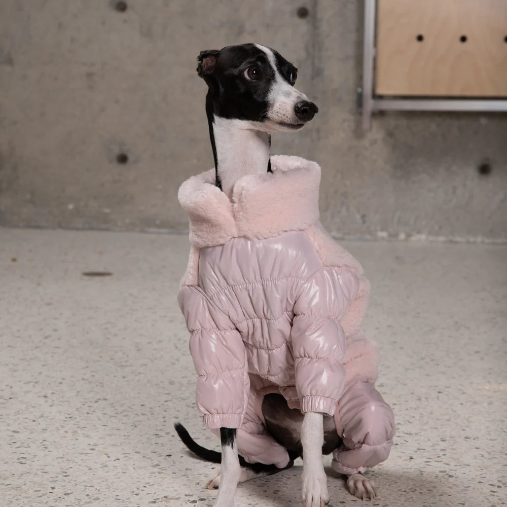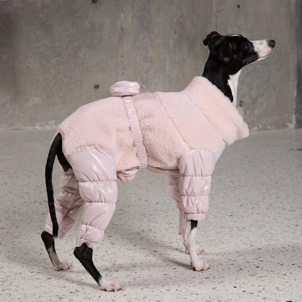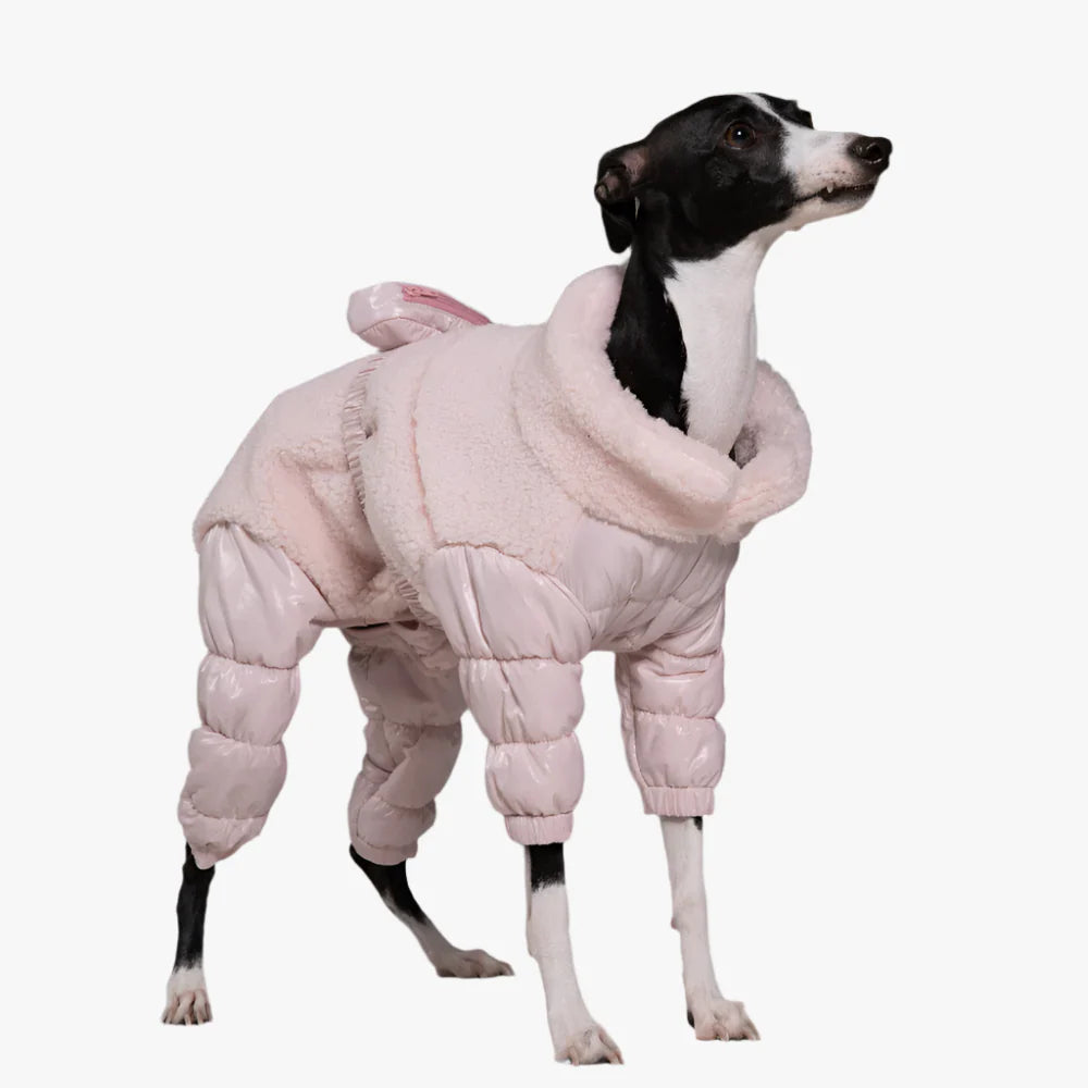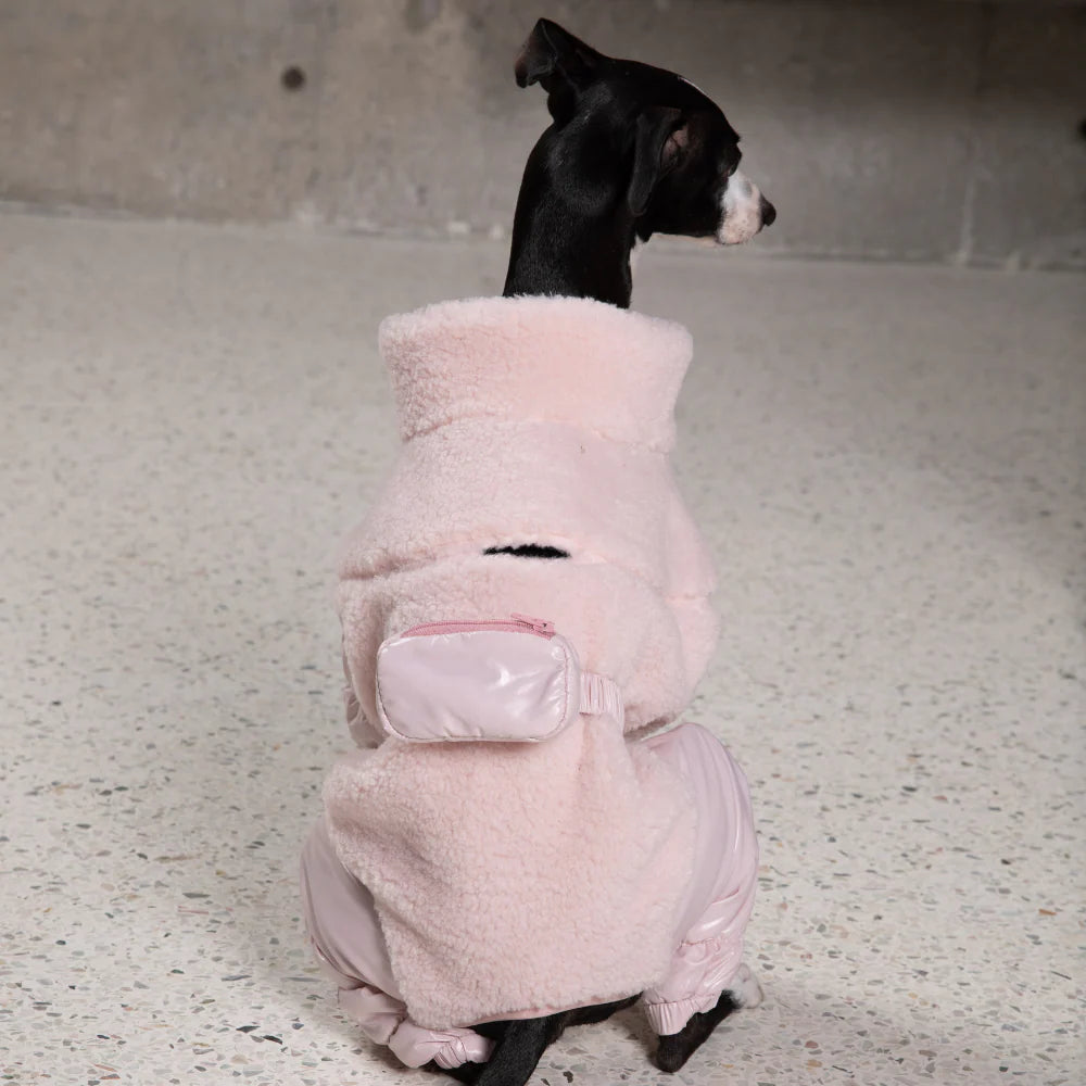 Meet the Sherpa Onesie in Pink - the ultimate blend of luxury, comfort, and performance for your pup. Crafted for all-weather protection, this premium dog outfit is engineered with a water-resistant exterior and 3M™ Thinsulate™ insulation to keep your four-legged companion warm without compromising mobility.