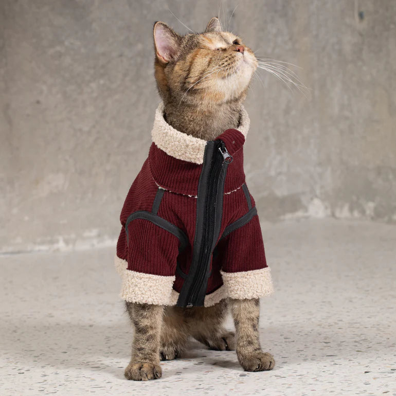 The Corduroy Jacket Vest is a winter essential that blends rugged style with practical comfort. Designed with a durable corduroy exterior and a plush sherpa lining, this vest delivers lasting warmth on chilly days while giving your pup a timeless, pilot-inspired look. Its windproof construction shields your dog from cold breezes, while the protective high neck adds extra coverage where it’s needed most. A convenient belly zip closure makes dressing simple and secure, ensuring your pup is ready for winter walks in seconds.