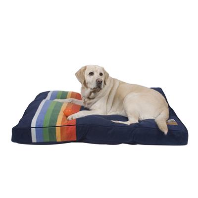 The Crater Lake National Park Pet Napper is where iconic design meets everyday comfort for your four-legged friend. Inspired by the breathtaking beauty of Crater Lake, its bold colored stripes on a bright blue backdrop make this bed a true statement piece in any home. Built for both style and performance, the Pet Napper is overstuffed with eco-friendly, recycled high-loft MemoryFiber™ polyester fill, ensuring superior comfort while supporting sustainability. The insert features a channel construction that holds the fill securely in place, preventing lumps and providing consistent cushioning for years to come. Every detail of this luxury pet bed reflects Pendleton’s signature craftsmanship. The sleep surface is crafted from 100% polyester non-pill 320GSM polar fleece, offering a soft and cozy texture your pet will love. The base is made from durable 8oz cotton canvas for extra strength. A hidden zipper keeps the look sleek while allowing the removable cover to be conveniently machine washed. Authentic branding details include the Warranted To Be A Pendleton suede patch and the iconic woven National Park label, celebrating heritage and quality. Give your dog the gift of comfort and style with a Pet Napper inspired by America’s natural treasures—designed to last and easy to maintain.