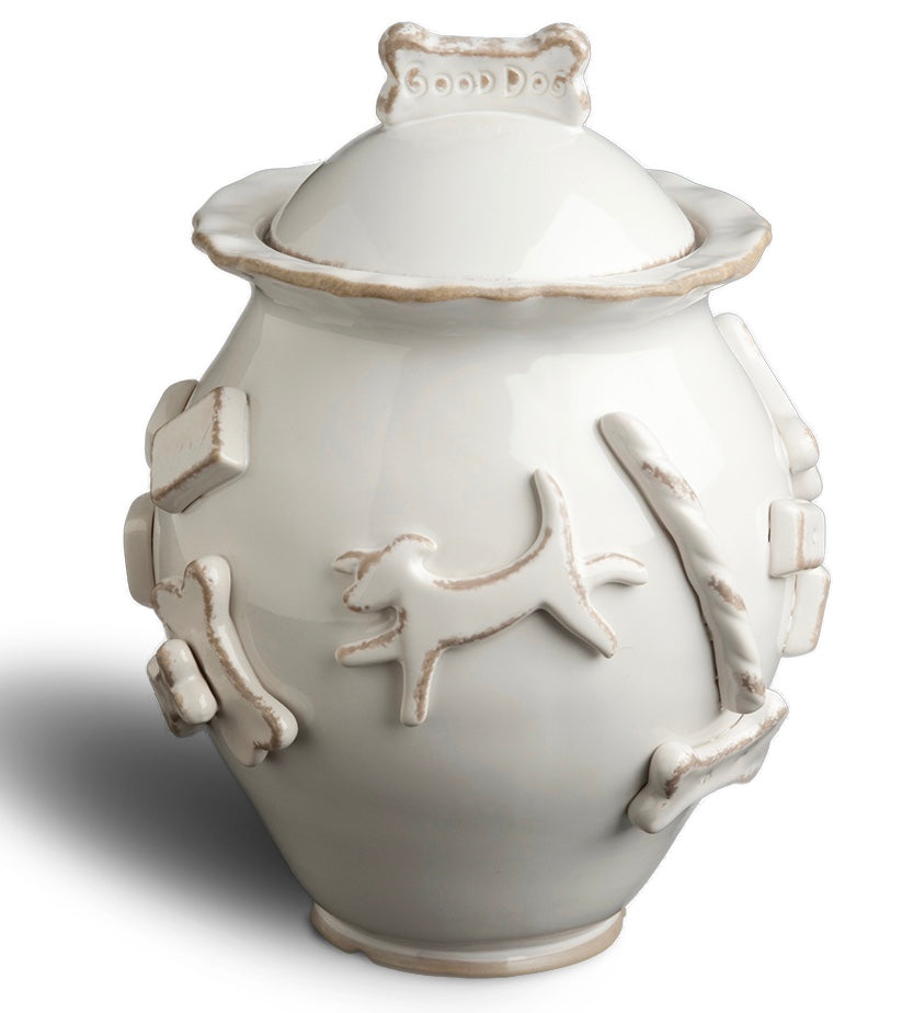 This white ceramic treat jar makes a thoughtful gift for dog lovers and an elegant way to keep your pet’s treats organized, fresh, and ready for rewarding good behavior.
