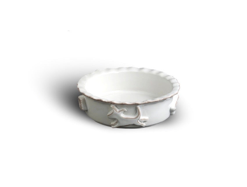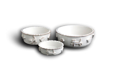 Bring timeless elegance to your pet’s mealtime with our White Ceramic Dog Bowl. Crafted from durable stoneware and finished with a soft white glaze, this bowl offers a classic and clean look that complements any décor. Each piece is handcrafted with raised dog and bone appliqués around the sides, creating a charming and sophisticated design that’s as beautiful as it is functional.
